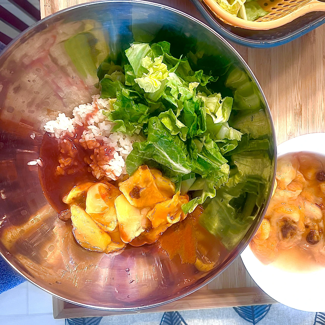 초고추장에 봄동과 멍게로 비빔밥을 해먹었습니다.