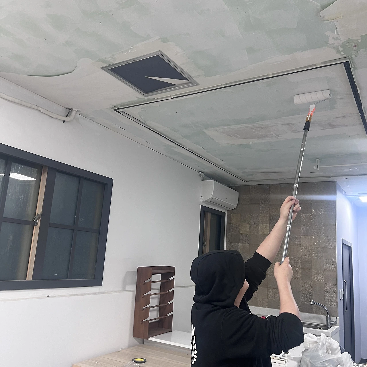 이제 천장은 구석진 대만 조금 더 칠 하면 끝날 것 같고