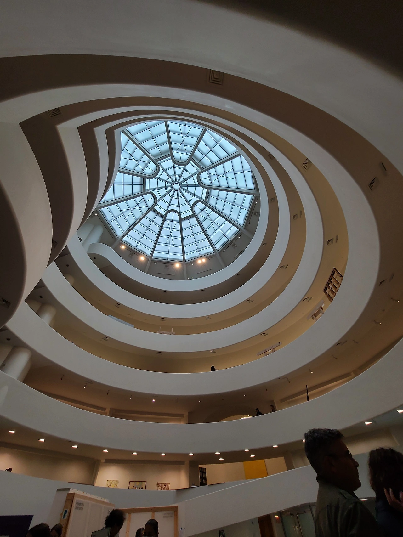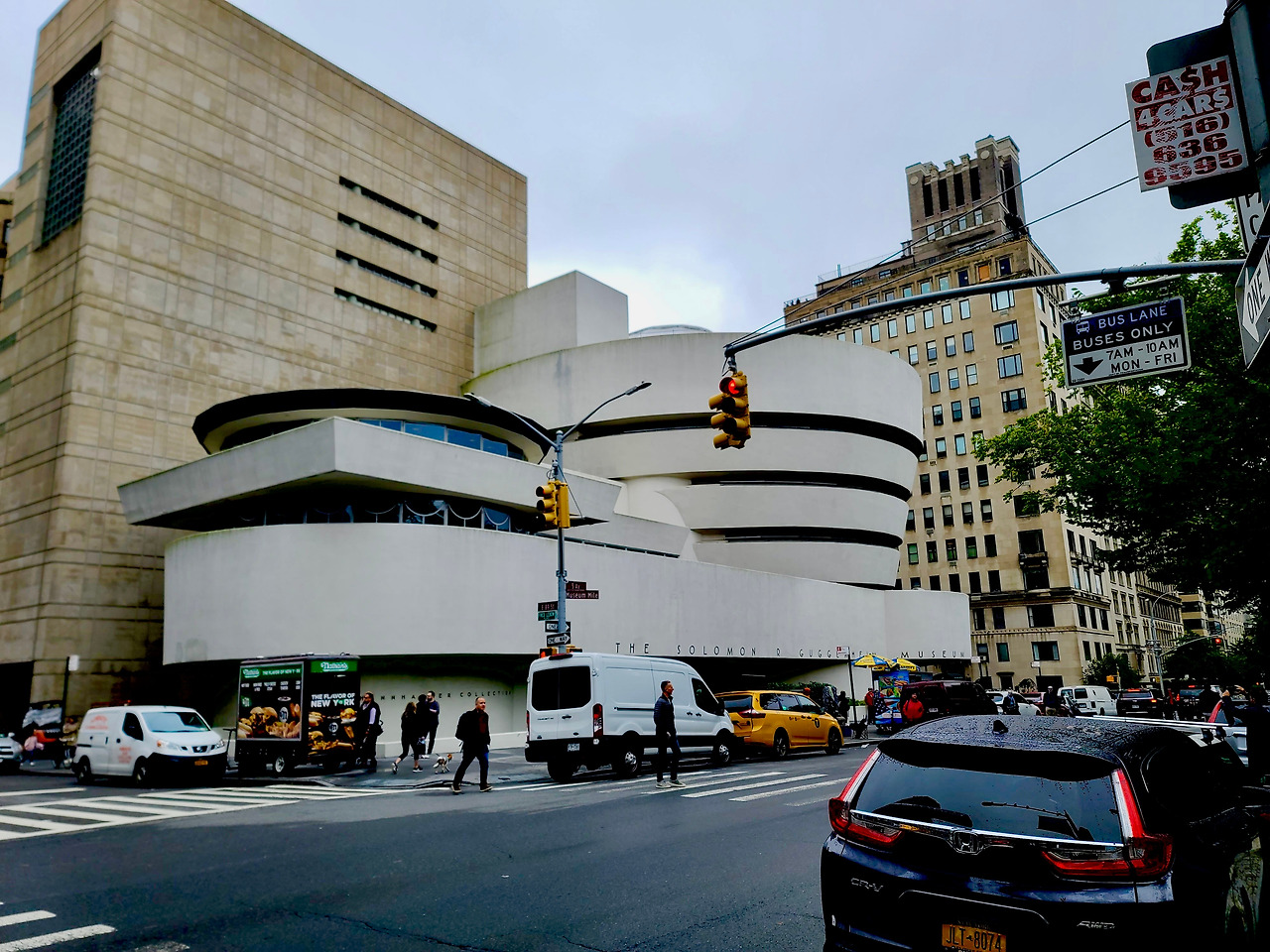 그리고 우리는 카페에서부터 말을 놓기로 했다. 나는 편하게 형이라고 부르고 강현이 형은 나를 편하게 부르기로 한 것이다. 점점 내적 친밀감이 쌓이고 있었다. 커피를 다 마신 후 카페에서 나와 뉴욕의 M 버스를 타고 가니 미술관에 금방 도착할 수 있었다. 도착하니 아직 오픈 시간이 아니어서 많은, 사람들이 줄을 서고 있었다. 뉴욕에서의 첫 관광지 방문이다. 겉에서 본 구겐하임 미술관은 정말 멋있었고 횡단보도를 건너 사진 스팟 에서 사진을 찍었다. 한 가지 아쉬운 건 내부 공사 중이어서 볼 수 있는 전시관이 극히 제한된다고 했다. 운이 좋지 않은 우리 둘인지 첫날부터 걸리는 것들이 생긴다. 하지만 이 부분 역시 여행의 묘미 아니겠는가? 100% 만족할 수 있는 여행을 하면 좋겠지만 그러기는 정말 힘들다. 약간의 아쉬움이 남아 다음에 또 오고 싶게 하는 것이 여행의 매력 중 하나라고 생각한다. 약간의 아쉬운 마음을 머금고 대기 줄을 섰다. 약간은 쌀쌀하고 비가 조금씩 내리지만 대기를 하면서 느끼는 기대되는 감정 앞에서는 우리를 괴롭힐 수 없었다. 그렇게 30분 정도를 기다리니 오픈 시간인 11시가 되었고 금방 미술관 안으로 들어갈 수 있었다.