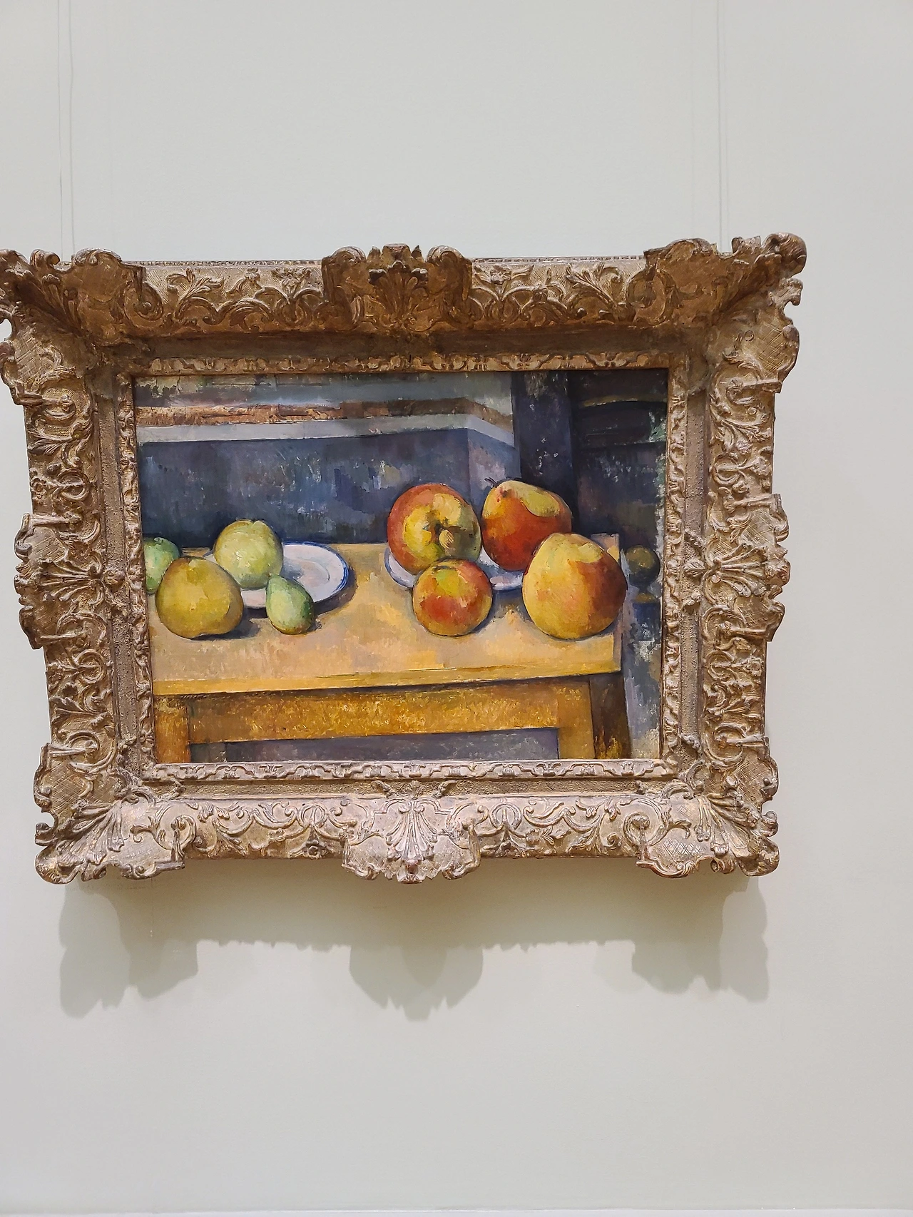 그리고 그 옆에서 내가 찾던 폴 세잔의 대표작인 ‘사과’를 찾을 수 있었다. 인류 역사를 바꾼 유명한 사과들이 있다. 아담과 이브의 선과 악을 알게 하는 사과, 뉴턴의 사과, 스티브 잡스의 사과, 그리고 세잔의 사과이다. 정말 경이로운 순간이자 영광스러운 순간이었다. 세잔은 ‘사과 하나로 파리를 놀라게 하겠다’라고 선포했던 사람이다. 그리고 사과에 대한, 연구를 40년 동안이나 했다고 한다. 하루종일 사과만 바라보기도 하고 수많은 사과들을 그려보기도 했다. 그리고 마침내 자신이 뚝심 있게 밀고 나간 결과를 ‘사과’라는 그림을 통해 전 세계 사람들에게 증명해 낸다. 사과 시리즈 중 일부를 구겐하임 미술관에서 먼저 봤지만, 원작의 감동은 훨씬 크게 다가왔다. 연신 사진을 찍으며 그 자리에서 그림을 바라만 보았다. 늦게나마 미술사에 관심이 생겨 이런 그림들을 보기 위해 메트로폴리탄에 방문한 나 자신에게 칭찬을 해주고 싶다. 사과 옆에는 사과와 복숭아, 사과와 오렌지 등 사과 시리즈들이 나열되어 있었다.