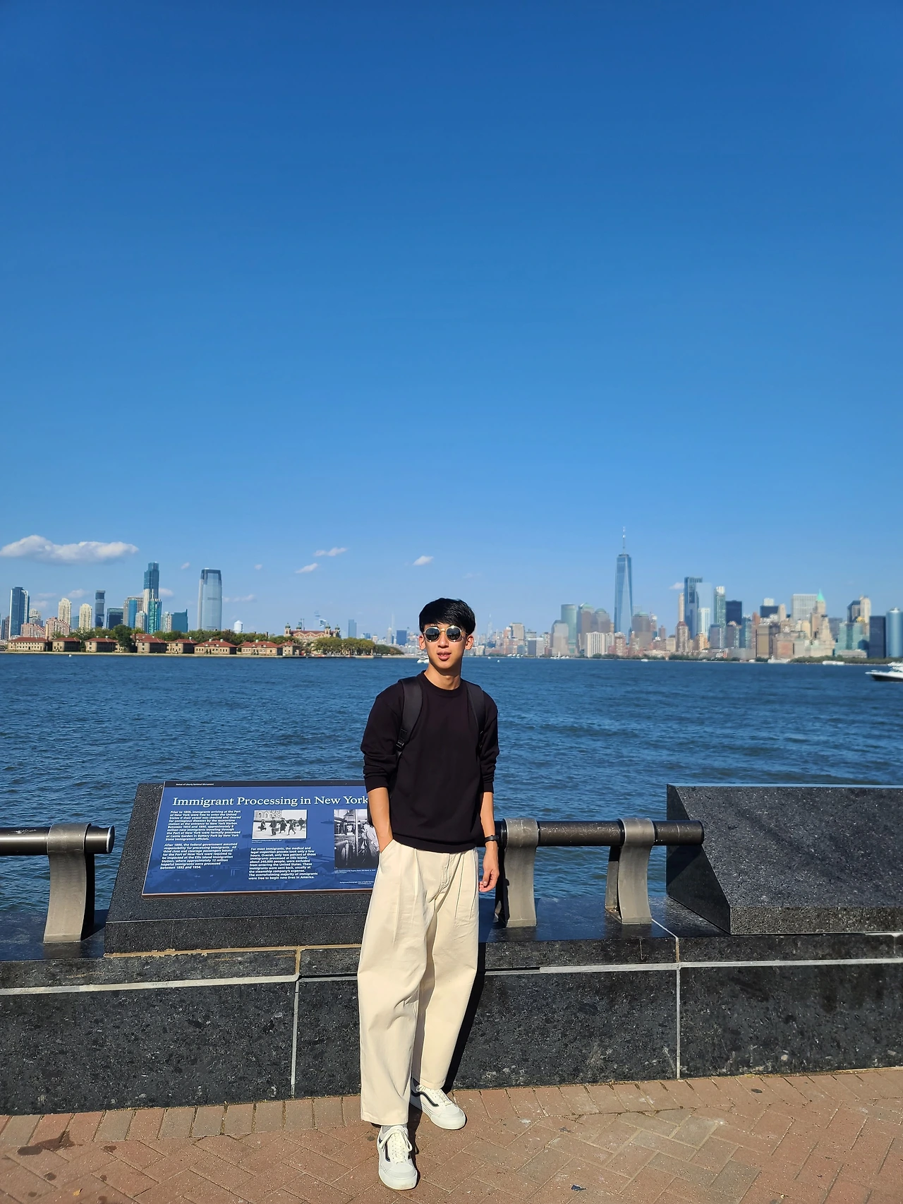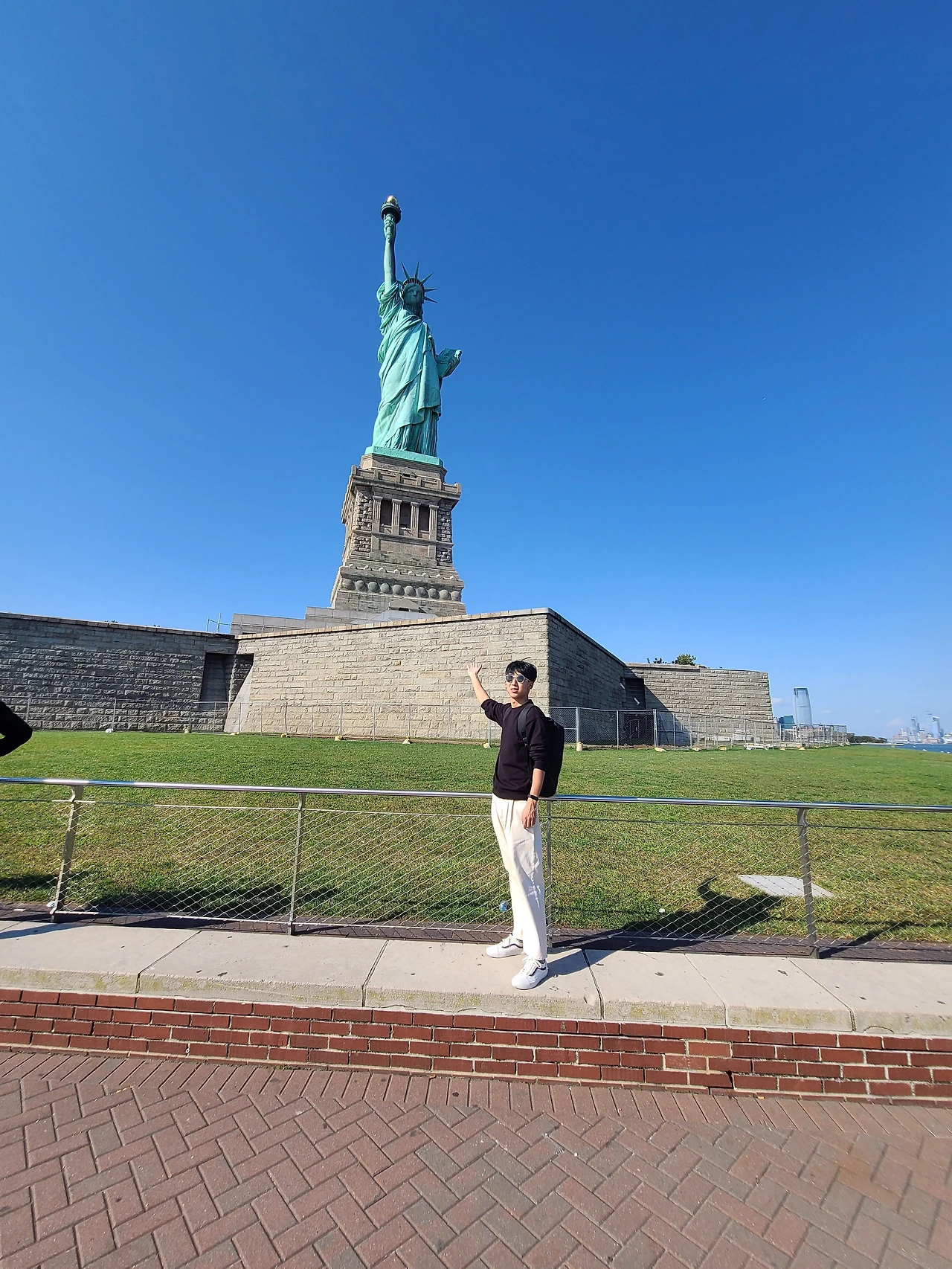 여신상이 가장 잘 나오는 스팟 에서 사진을 찍은 후 섬을 빠르게 둘러보았다. 여신상 뒤쪽으로 가니 강 너머 맨해튼과 뉴저지가 한꺼번에 보이는 스팟이 있었다. 여기도 사진 맛집이다. 멀리서 맨해튼과 뉴저지를 보니 정말 멋있었고 사진 또한 잘 나왔다. 섬을 둘러보았으니 아쉽지만, 여신상과 작별을 고할 시간이 되었다. 다소 이른 감이 있지만, 박물관에 들어가지 않는 이상 생각보다 안에서 볼 것들은 많이 없었다.