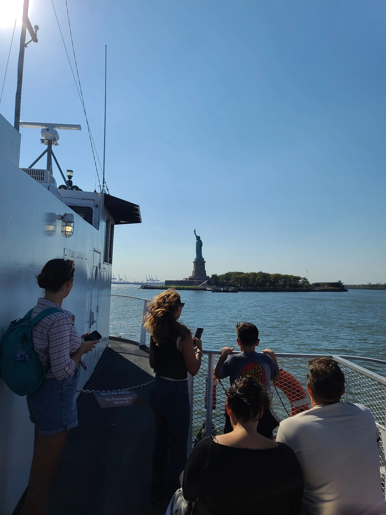 나는 커피를 정말 좋아해서 반드시 하루에 한잔 마시는 사람이다. 웬만한 커피는 다 맛있게 마시지만, 이곳의 커피는 편의점 커피만도 못한 커피였다. 카페 이름이 기억이 나질 않고 찾아봐도 정보가 나오지 않아서 자유의 여신상에 가게 되면 어떤 카페는 절대 가지 말라고 말해주고 싶지만 그렇게는, 못하게 됐다. 뭐 내 입맛이 너무 까다로운 것일 수도 있지만 내 기준에서는 최악이었다. 너무 열불을 낸 것 같다. 결국, 네 모금 정도밖에 먹지 못한 커피를 쓰레기통에 버리고 다시 산책을 했다. 속에서도 더부룩한지 헛구역질이 여러 번 나왔다. 주변을 둘러보며 산책을 하니 어느덧 2시 30분이 되었다. 슬슬 패리를 타러 선착장 아무래도 한 국가의 랜드마크 와도 같은 곳이니 그만큼 관리가 힘든 가보다. 검사를 마치고 드디어 선착장으로! 거대한 패리가 출발 준비를 하고 있었고 5분 정도 기다리니 게이트의 문이 열리고 탑승이 시작되었다. 패리에 몸을 싣고 2층으로 올라갔다. 2층 패리의 가운데 좌석에 앉아 출발을 대기! 드디어 보고 싶었던 자유의 여신상을 본다.!