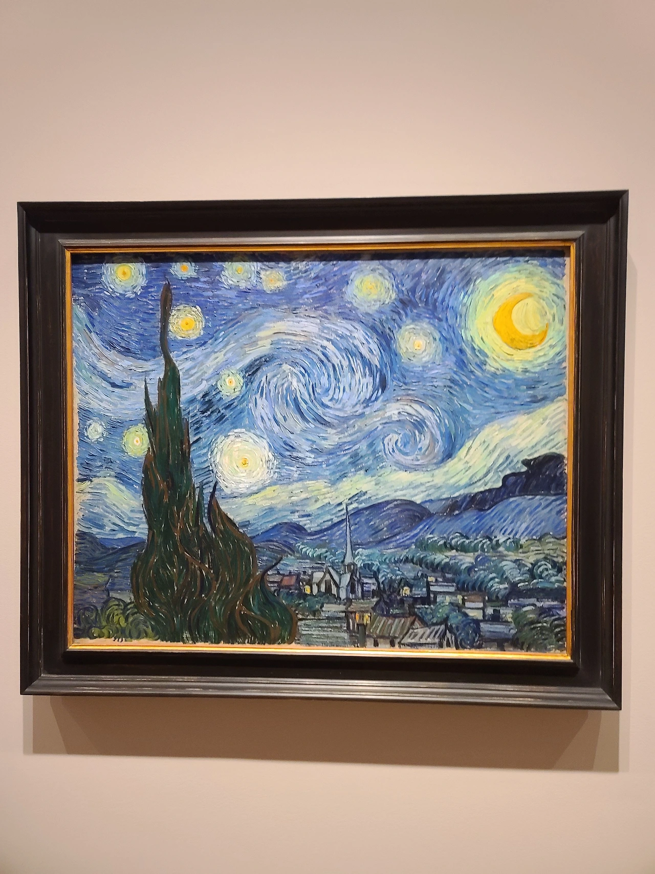 5층 첫 갤러리에 입성했다. 한가운데에 그 유명한 고흐의 별이 빛나는 밤이 걸려있었다. 사실 가장 나중에 보고 싶었던 그림인데 이렇게 갑자기 볼 줄은 몰랐다. 그곳에 대부분의 사람들이 몰려들어 사진을 찍고 있었다. 예상보다 일찍 봤지만 봤을 때의 감동은 정말 컸다. 그림에서 웅장한 소리가 나는 것 같았다. 고흐가 자신의 절친과도 같았던 고갱과 크게 다툰 후 분을 이기지 못해 귀를 스스로 자른 후 정신적으로 큰 고통을 받아 생 레미 정신 병원에 입원해 있던 중 그려진 그림이다. 당시 고흐가 느꼈던 정신적 고통을 소용돌이로 묘사했다고 한다. 고흐의 관점에서 보이는 풍경들을 그림에 담았다고 했는데 이 그림이 웅장하고 멋있기는 하지만 당대 고흐의 심리 상태 또한 그대로 들어있는 것 같아서 슬프기도 했다. 역시 고흐 그림이다. 넋 놓고 몇 분간 바라보고 사진을 찍었다. 어제 세잔의 사과에 이어 뉴욕에서 가장 영광스러웠던 순간 중 한순간이었다. 다른 그림들도 보기 위해 이곳저곳 돌아다녔다. 그러던 중