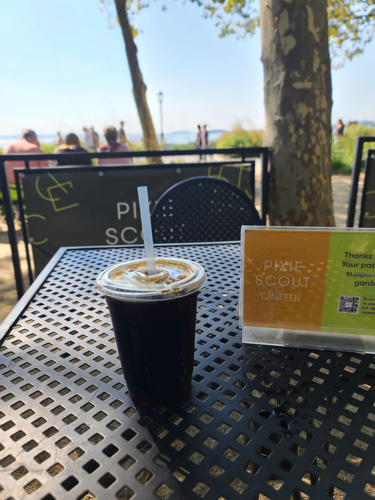 첫인상은 솔직히 그다지 맛있어 보이지 않았다. 전형적인 싸구려 햄버거 비주얼이었다. 하지만 한 입 배어, 문 순간 나의, 생각은 어리석었음을 알 수 있었다. 와.. 정말 환상적인 맛이었다. 괜히 3대 버거가 아니다. 고기 패티는 입에 들어가는 순간 샤르르 녹았고 치즈의 느끼함을 숯불향 나는 버섯과 아삭아삭한 상추가 잡아주었다. 여태 먹었던 햄버거들과는 비교가 되지 않을 정도로 맛있었다. 기대 이상 아니 그 이상으로 너무나 맛있었다. 한국에서 글을 쓰고 있는 지금도 그 맛이 생생히 기억날 정도이니 그 맛의 임팩트는 정말 대단했다. 콜라와 함께 순식간에 먹어 치웠다. 엄청나게 기름지기는 하다. 하지만 엄청나게 맛있기에 귀국하기 전 한 번 더 먹어봐야겠다. 든든히 배를 채우고 식당에서 나와 자유의 여신상으로 가려한다. 들뜬 마음을 가득 싣고 전철역으로 향했다. 나는 배터리 파크에서 엘리스 아일랜드 페리를 탈 예정이다. 탑승 시간은 3시이고 시간이 충분해서 여유롭게 갈 수 있었다. 이젠 길을 잃지 않고 한 번에 찾아갈 수 있었다. 그렇게 한 번에 찾아간 배터리 파크에 도착하니 온통 사람으로 붐볐다. 큰 건물 하나가 있어서 거기에서 패리를 타는 줄 알고 들어갔는데 알고 보니 거기는 출퇴근용 패리를 탑승하는 곳이라고 한다. 엘리스 아일랜드 패리 탑승장은 건물 우측에서 조금 걸어가니 나왔다. 위치를 확인한 후 시간이 조금 남아 내 앞에 펼쳐진 풍경을 보았다. 저 멀리 자유의 여신상의 모습이 보였다. 카메라 줌을 확대해서 사진을 찍고 주변 산책을 했다. 산책하다가 야외 테라스에서 커피를 마실 수 있는 카페가 있어서 커피를 마시며 풍경을 보는 여유와 낭만적인 상상을 하며 콜드브루 아메리카노를 주문하고 자리를 잡았다. 커피를 마신 순간 나의 상상은 와르르 무너졌다.
