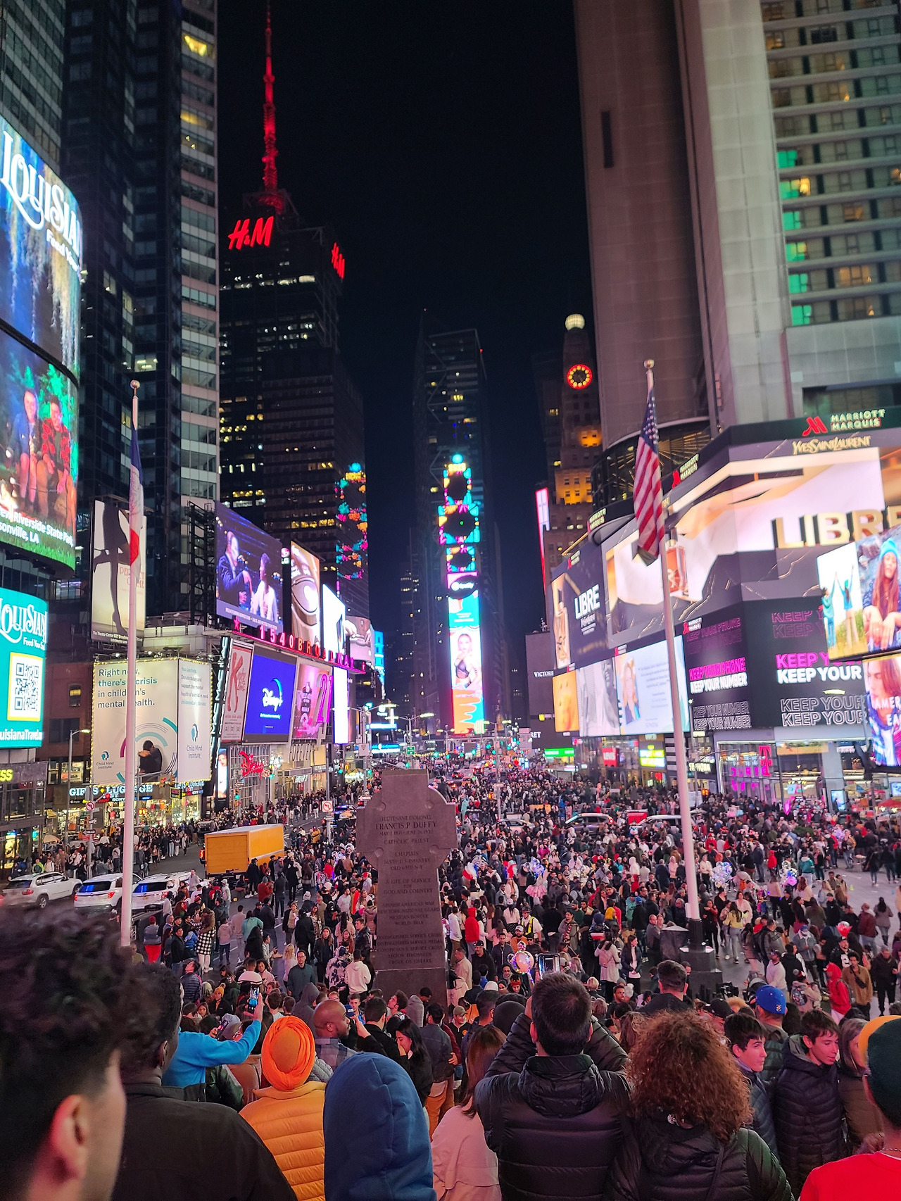 존경심이 들었다. 그리고 부러웠다. 추위를 타지 않다니 나는 어차피 외투 하나 정도 더 살 생각이어서 H&M으로 향했다. 급하게 외투를 사서 입고 나오니 한결 편안해졌다. 이 정도면 그다지 춥지도 않았다. 외투라는 든든한 지원군과 함께 우리는 타임스 스퀘어로 향했다. 걸어가도 될 정도로 가까웠다. 나는 아직 밤에 타임스 스퀘어에 제대로 가본 적이 없었다. 서로 가서 뭐 할지 얘기를 나누다 보니 금세 도착했다. 타임스 스퀘어의 밤은 그 어느 곳 보다도 화려했다. 수시로 바뀌는 대형 전광판들은 미래 도시를 연상케 했고 눈앞에 보이는 수많은 인파들은 뉴욕의 밤을 마음껏 즐기는 듯 행복한 표정이었다. 여기서 뭘 할지 얘기를 나누던 중 시티투어 버스인 탑뷰 버스를 타기로 했다. 한 번쯤은 타고 싶어서 조심스레 얘기하니 나람 님이 나의 의견에 힘을 실어주었다. 다른 분들도, 동의를 해서 타임스 스퀘어 앞에서 열심히 모객을 하는 직원? 분에게 갔다.