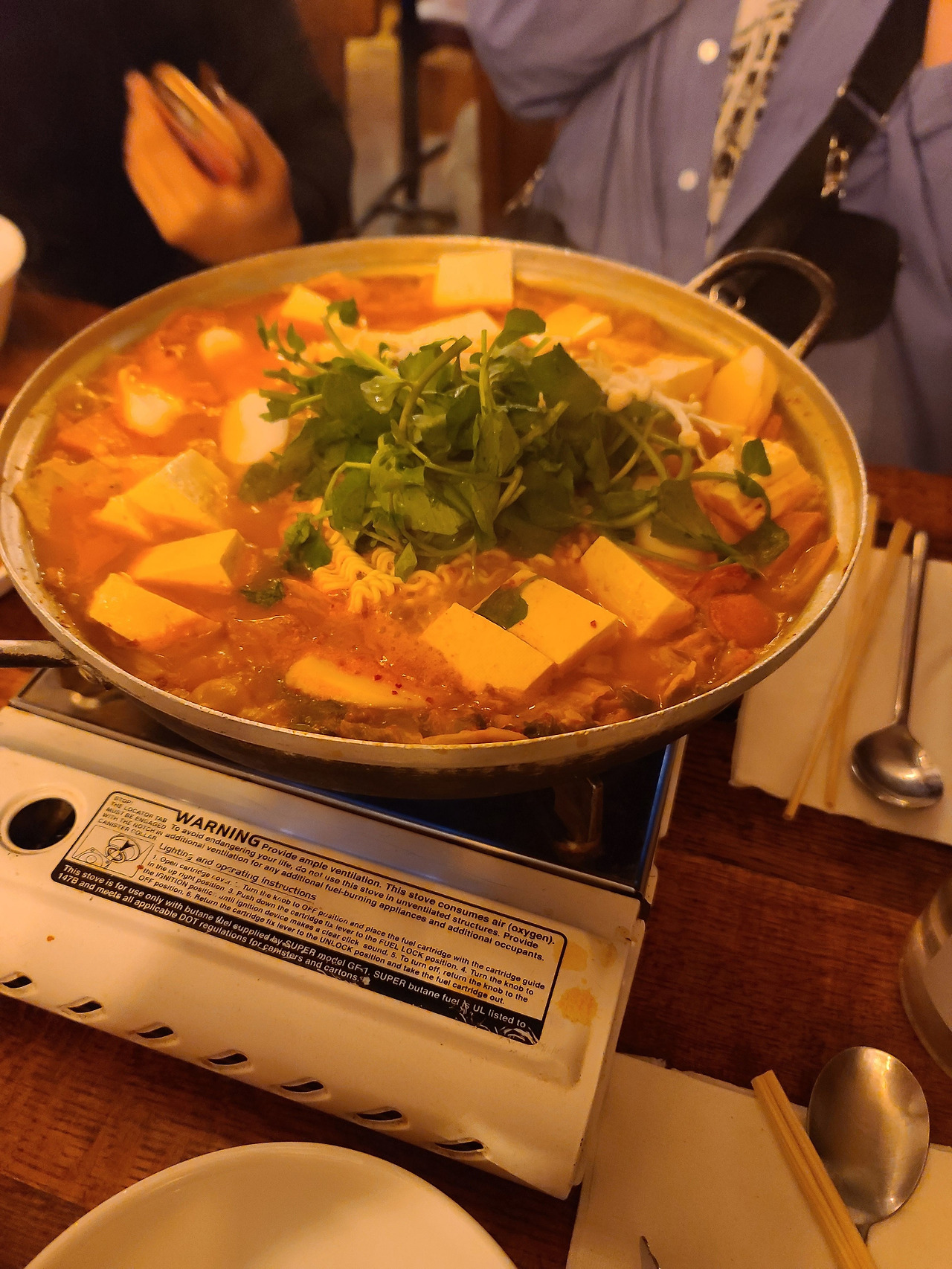 원래 같이 가기로 했었는데 사정상 못 가게 된 거니 정윤 님과 나람 님도 나의 존재에 대하여 알고 있었다고 했고 대화 내내 서로 웃음이 끊이질 않았다. 다들 좋은 사람들이라는 것이 느껴졌다. 드디어 음식이 나왔다. 이렇게 늦게 저녁밥을 먹으리라곤 예상하지 못했지만, 눈앞에 보이는 한식의 자태에 자지러질 것만 같았다. 서로 잘 먹겠습니다. 를 외친 후 먹기 시작했다. 부대찌개는 내 소울푸드다. 가장 좋아하는 음식을 뉴욕에서 먹으니 색달랐다. 맛은 평범한 부대찌개 맛이었지만 다른 나라에서 처음 만난 사람들과 친해지며 먹었던 한식집의 분위기와 맛은 그 어떤 식당의 음식들 보다도 맛있었다. 음식을 먹으면서도 대화는 계속됐다.