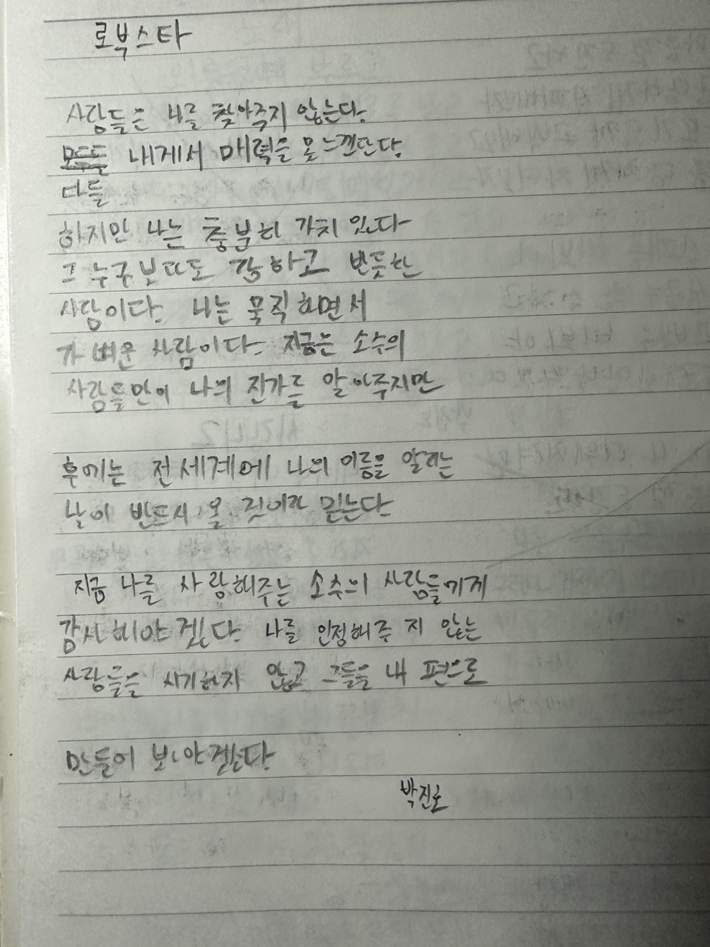 필리핀에서 어학연수를 하던 중 주말이어서 숙소에서 쉬고 있었는데, 문득 카페에 가야겠다는 생각이 들어 구글 맵을 켜고 카페를 검색했다. 그중 로부스터 원두를 취급한다는 카페를 보게 되었고, 평소 자주 가던 스타벅스와 Coffe Break(필리핀의 유명한 체인점)를 가지 않고 그 카페에 가야겠다는 생각이 들었다. 곧장 가방을 챙겨 카페로 향했고 다소 쓴 커피와 함께 나온 머핀을 먹으며 글을 쓰게 되었고 이런 글이 탄생하게 되었다.