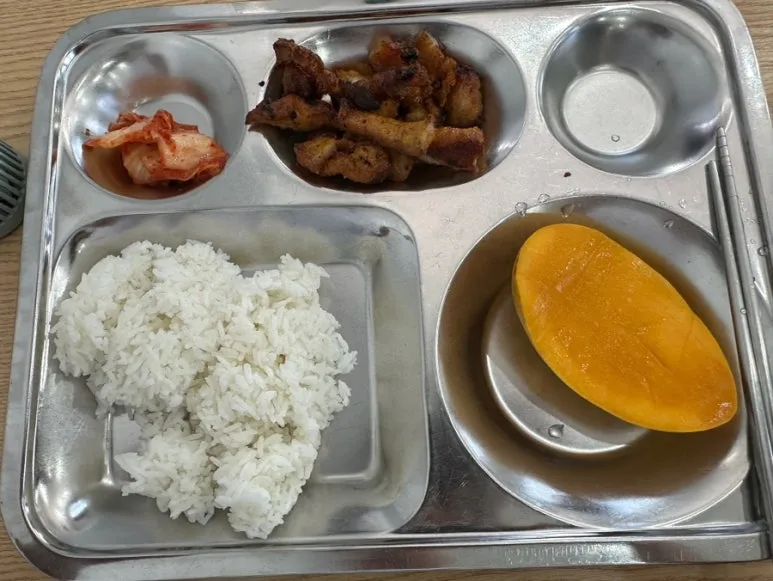 조리사분들은 다 외국 분들이었는데 한식이 어찌나 맛이 있던지... 다른 친구들은 잘 모르겠다고 했지만 연수가 진행되는 동안 내가 우리 학교에서 밥을 가장 맛있게 먹었다. 간식으로 망고까지 나오니 이리 완벽하지 않을 수가 있나? 언제나 식사 시간이 기다려진다.