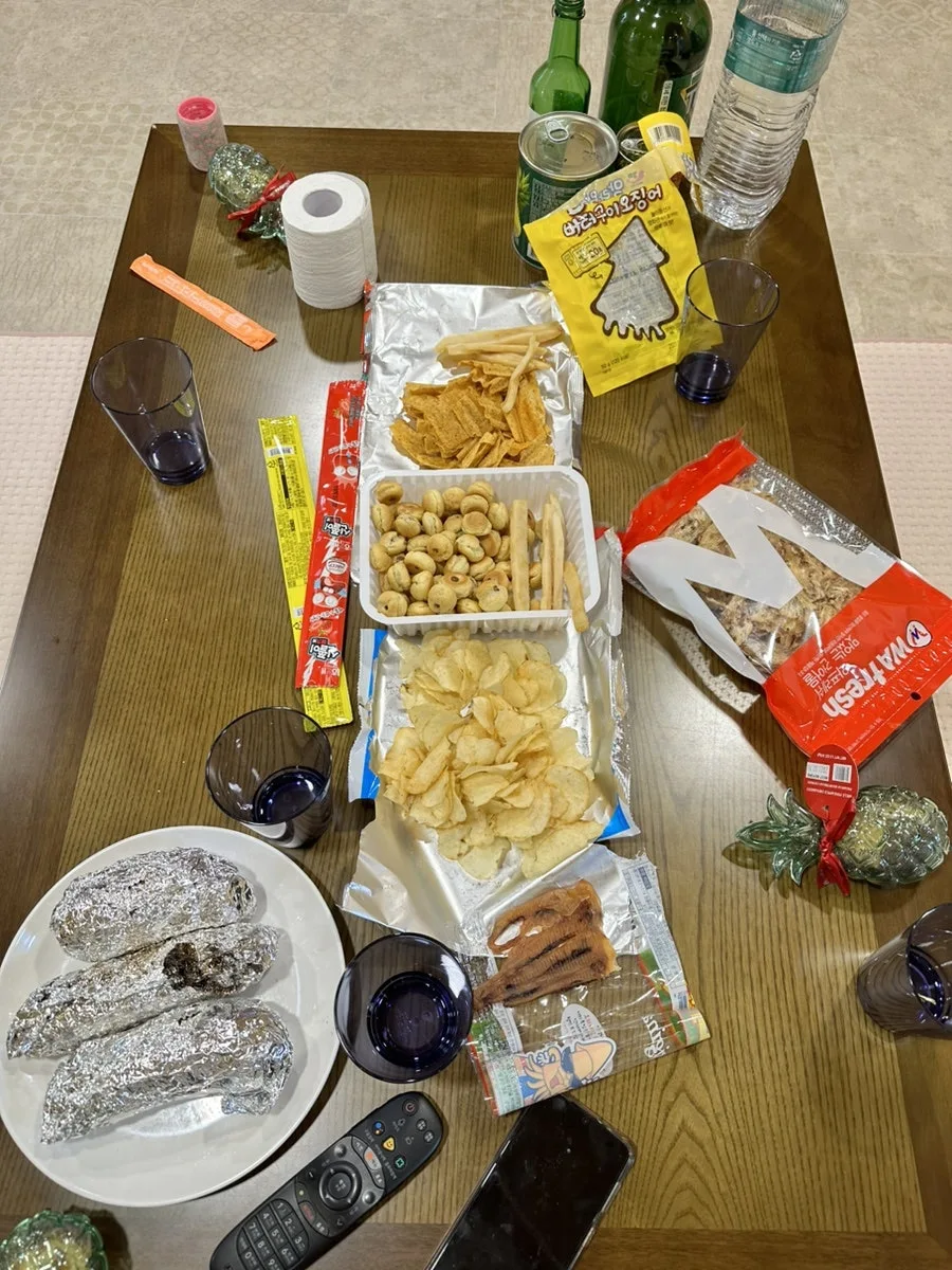 너무 늦어서 숙소로 돌아와 2차를 시작했다.