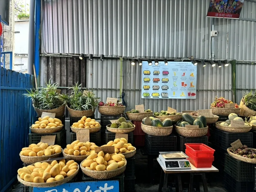 깔끔한 아메리카노를 먹고 싶었지만 식당 근처에 있는 망고의 달달한 냄새에 이끌려 로켓푸르츠라는 곳에서 망고스무디 2개를 주문했다.
