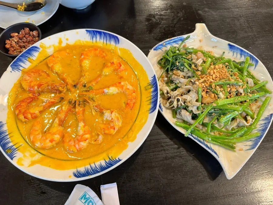 새우는 먹기 좋게 까주셨고 모닝글로리는 왜 먹나 했는데 이야 우리 입에 딱이다.