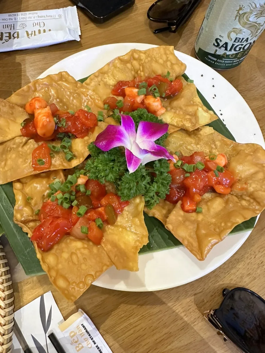 자리에 앉자마자 주문한 반세오 넴루이세트, 완탄, 스프링롤, 사이공맥주
