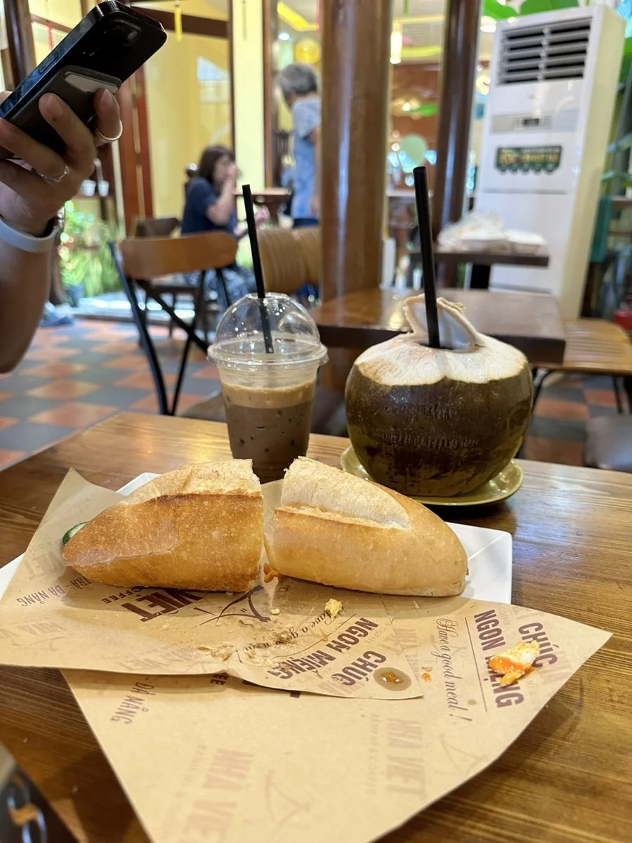 코코넛주스, 사이공연유커피, 계란반미, 돼지고기반미를 주문했다.