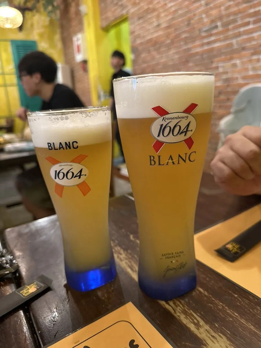 메뉴는 곱창쌀국수, 치즈품은 가리비, 안토이모닝글로리, 블랑 생맥 330이랑 500 을 주문했다.
