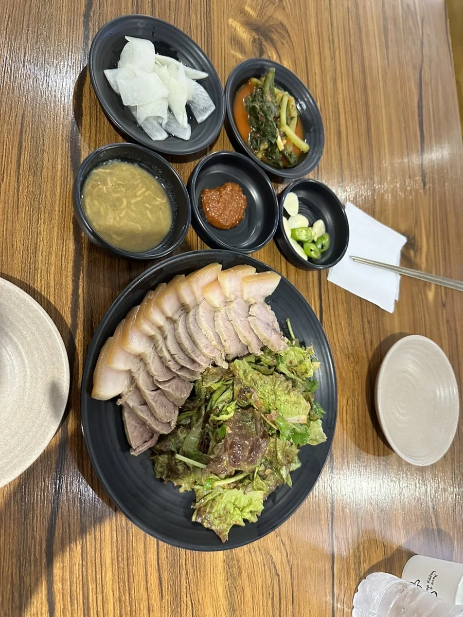 맛보기수육도 보들보들 배고픈 것도 있었지만 우리의 입맛을 사로잡았다.