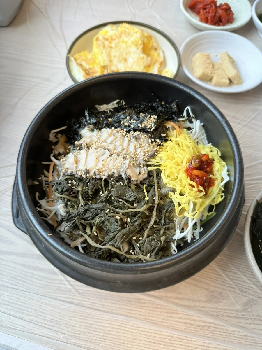 나는 전복뚝배기를 남편은 성게알비빔밥을 먹었다.