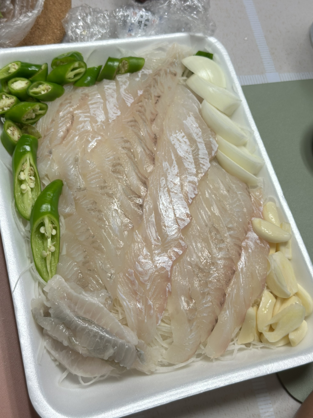 평소 같았으면 모둠회를 주문했겠지만 14000원이나 차이가 나서 광어회만 주문했다.
