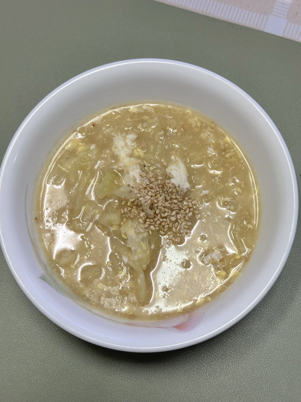 물1.5컵에 양배추 두줌과 오트밀5큰술, 계란1개