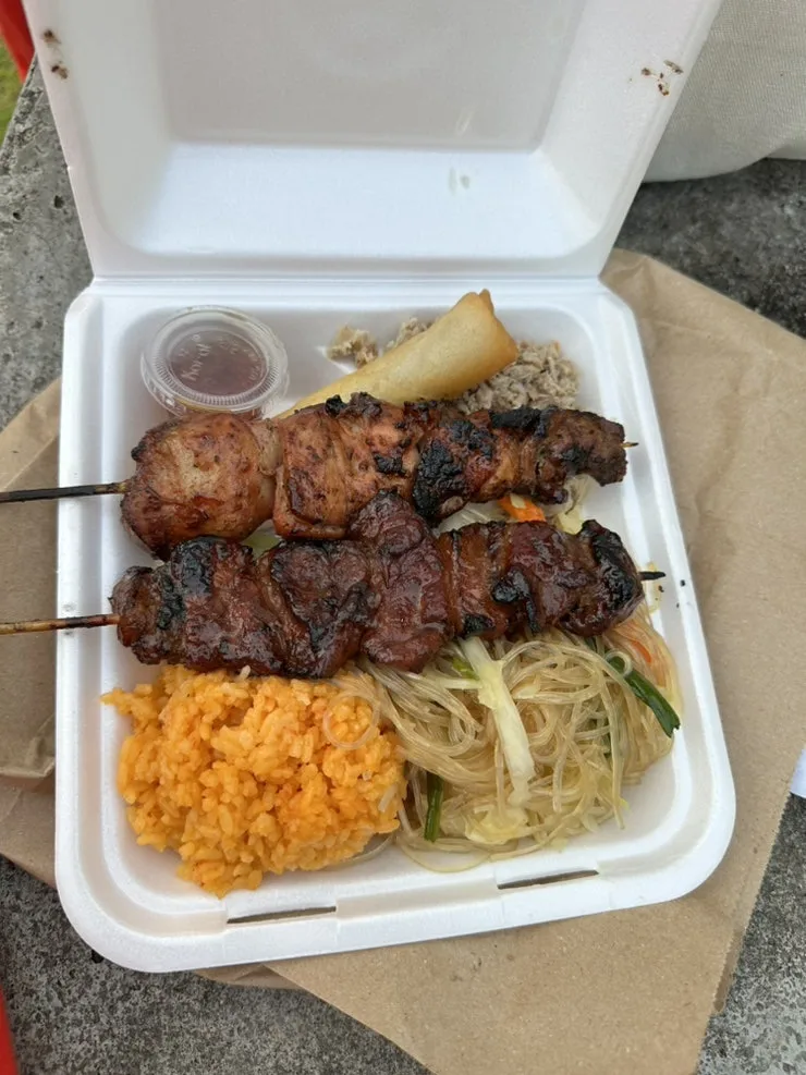 진갈색을 띤 두 번째 꼬치는 맛있었고 밥과 잡채는 그냥 그랬다.
