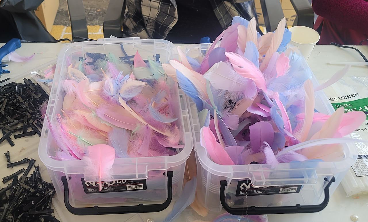 큰돈 들이지 않고도 멋지게 만들어 낼 수 있는 액세서리를 만들어 달라 센터장님을 만날 때마다 부탁을 드렸다. 조우관 깃털! 지금 생각해 보면 그게 뭐 별거냐?라고 돼물을 수 있겠지만 난 이번 축제에서 가장 만족하는 것이 이 깃털머릿핀이다.