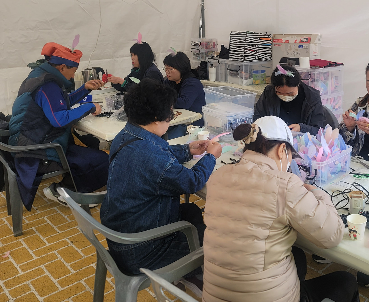 조우관 깃털은 철쭉제를 준비하며 예쁜 철쭉머릿핀을 만들어낸 여성취업지원센터에 몇 달 전부터 의뢰를 했었다. 아무리 시골 축제라지만 촌티를 꼭 걷어내고 싶었다. 축제장에 블랜딩을 만들어내자는 것이 나의 일관된 의지였다.