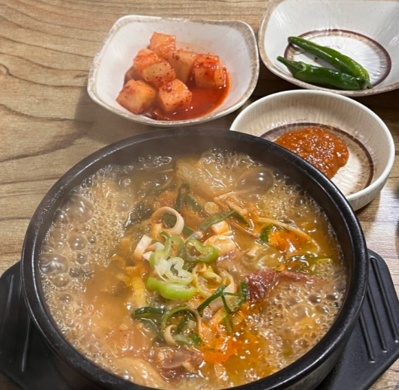 이 집은 해장국이라기보단 뼈다귀 감자탕 맛집인데, 특이하게 콩나물이 정말 가득하게 들어간 감자탕이라 이색적이다. 콩나물이 아삭거리면서 시원하게 국물을 우려내줘서 일반 감자탕과는 다르게 시원하고 깔끔한 감자탕 맛이 느껴진다. 감자탕 속 한가득 콩나물을 건져 아삭 씹어먹는 맛이 일품이라 가격대비 엄지 척 야식집이다.