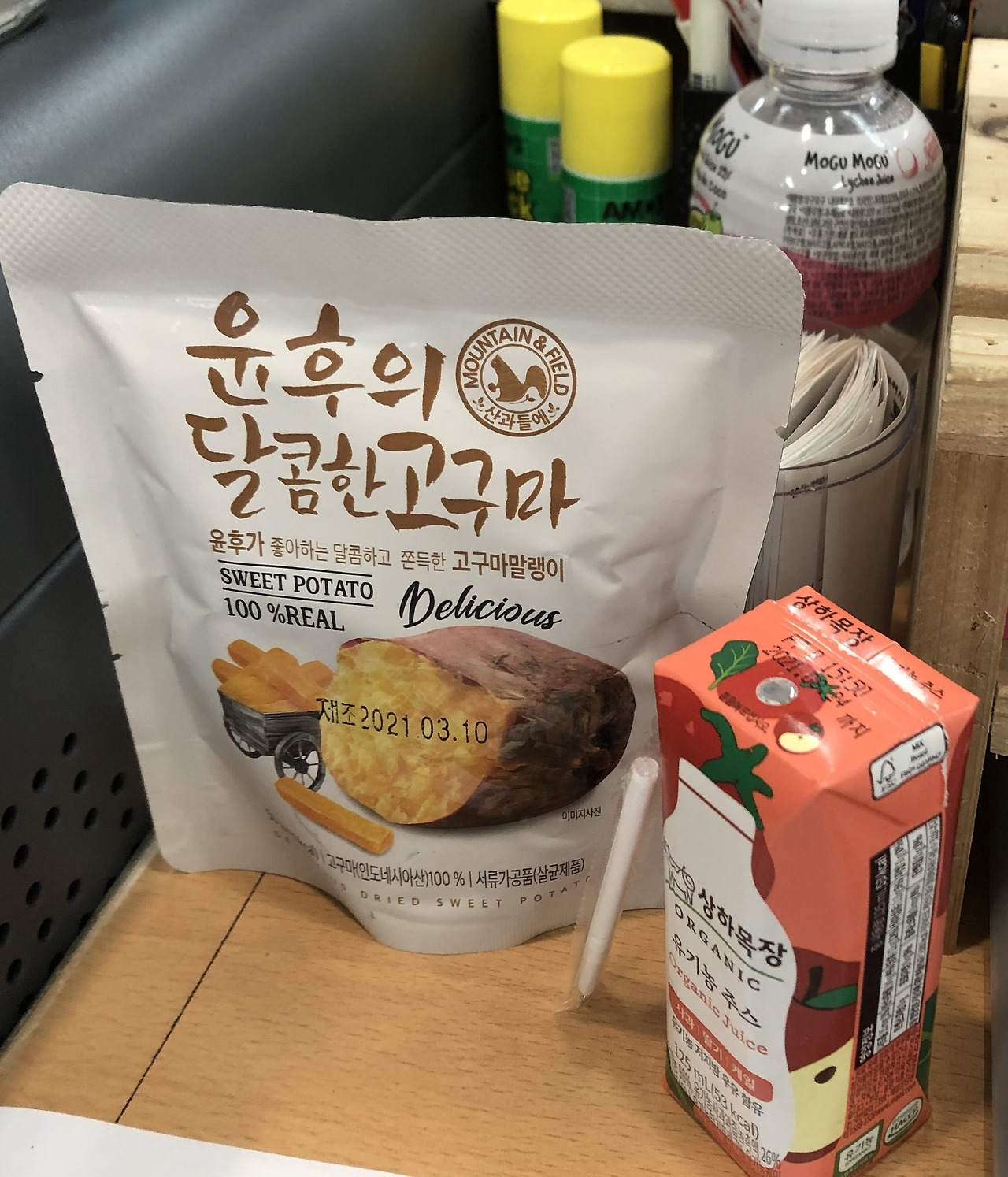같이 일하시는 동료분이 건네 주신 말린고구마랑 쥬스 한팩 주셨는데