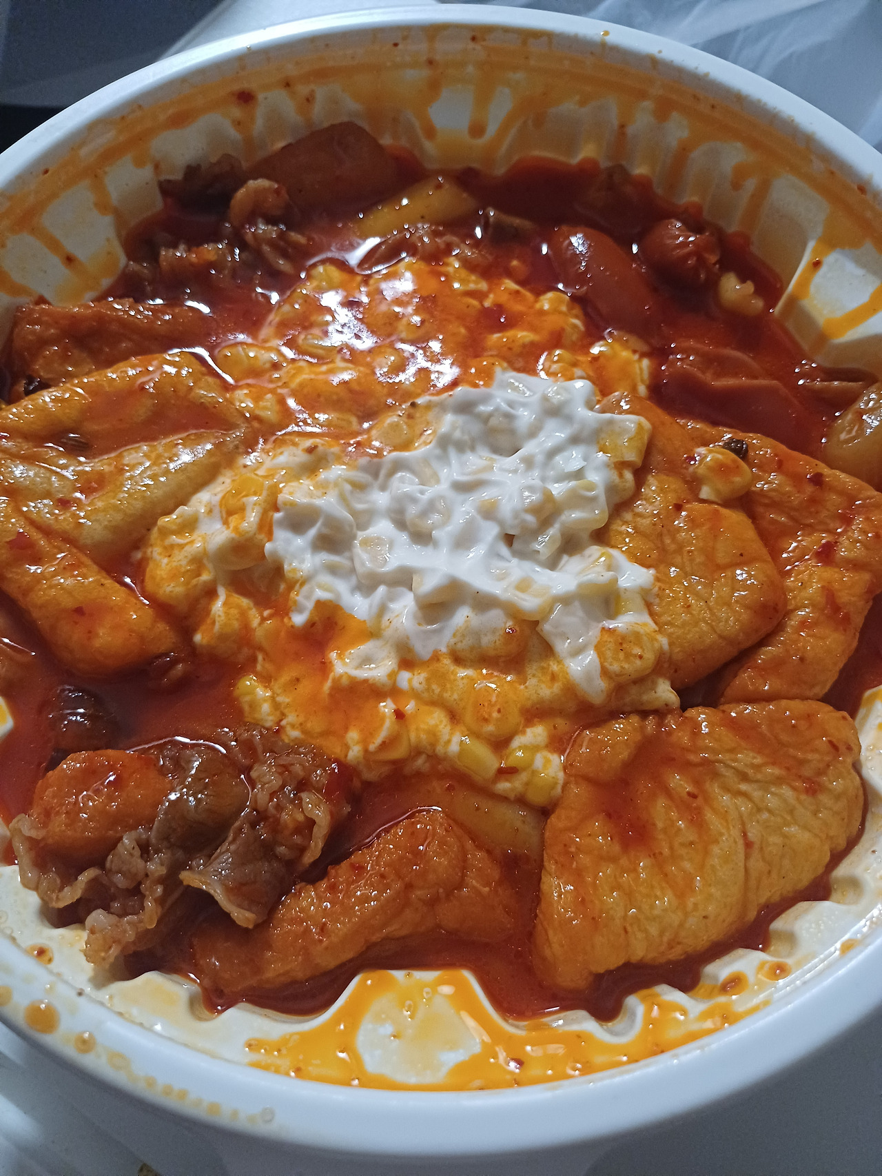 어묵과 메추리알과 비엔나소시지, 콘마요를 추가하면 내가 일년에 열두번도 더 먹는 엽떡 조합이 태어난다.