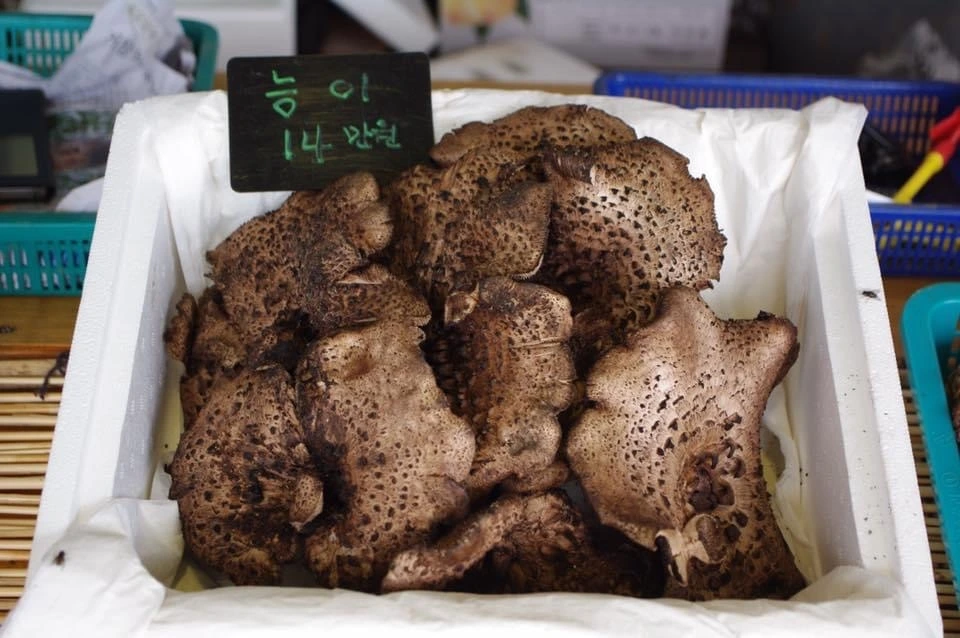 산에서 직접 채집한 가을 버섯들을 오래오래 신선하게 먹고 싶지만 생물이기에 어쩔 수 없는. 상인분들이 알려주시기로는 능이나 송이는 냉동을 추천하고 나머지는 말려 먹거나 살짝 데쳐서 소금에 절여 보관해 두고두고 먹으면 좋다고 하셨다.