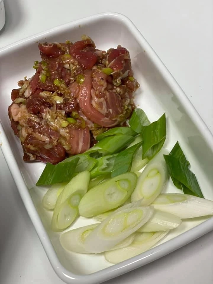 고기와 대파.