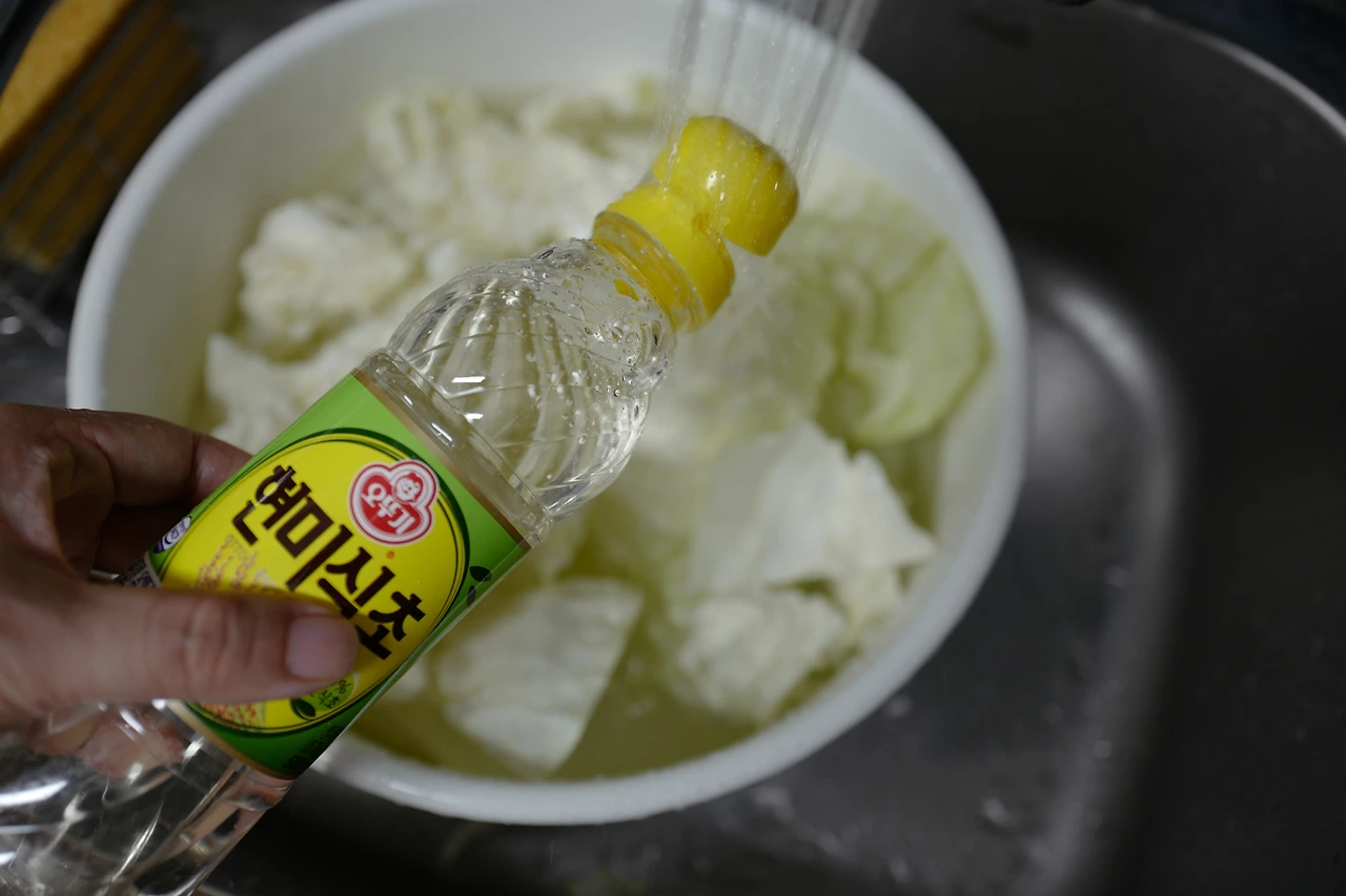 흐르는 물에 몇번 헹군 후 사과식초를 넣은 물에 15분 담궈낸 후 물기를 빼서 준비한다.