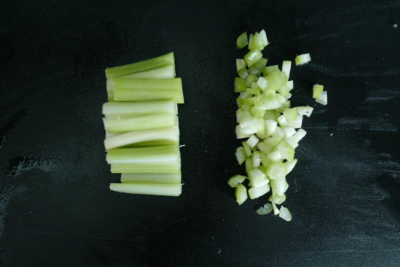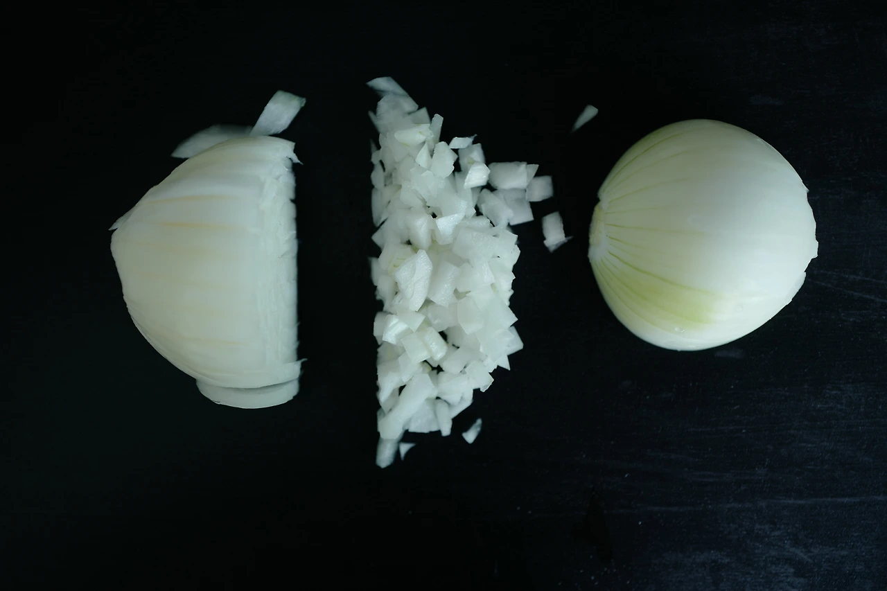 양파는 코울슬로에는 적색양파보다 흰 양파가 맛이 더 좋다고 생각한다. 칼집을 가로 세로로 내 준 후에 자르면 훨씬 수월하게 정리가 된다.