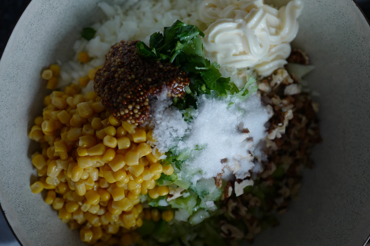 여기서 옥수수캔은 뜨거운 물을 부어 한 번 헹궈주면 좋다.