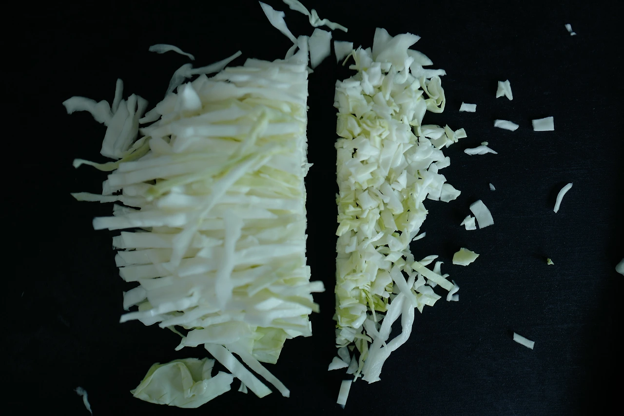 채친 양배추를 90도 돌려서 다시 촵촵 잘라준다.