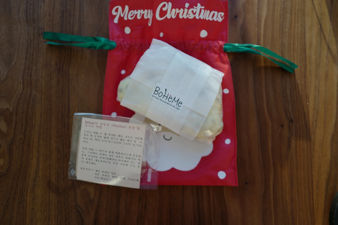 보엠의 슈톨렌도 매년 소개하는 제품입니다. 조금씩 변화를 꾀하는 보엠의 슈톨렌은 올해에는 참나무의 향과 바닐라 빈의 풍미에 집중한 듯 합니다.