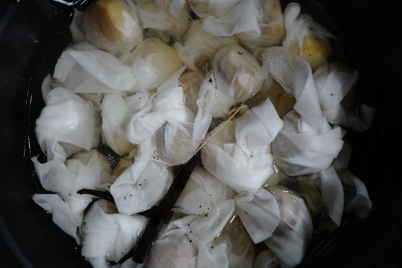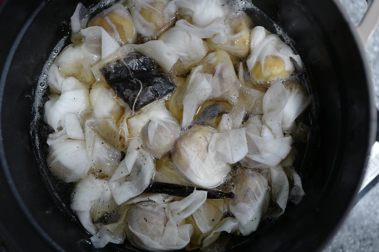 나는 다 같이 끓이고 그대로 다 같이 식혀 삼투압을 시킨다.