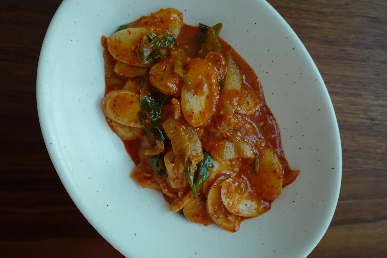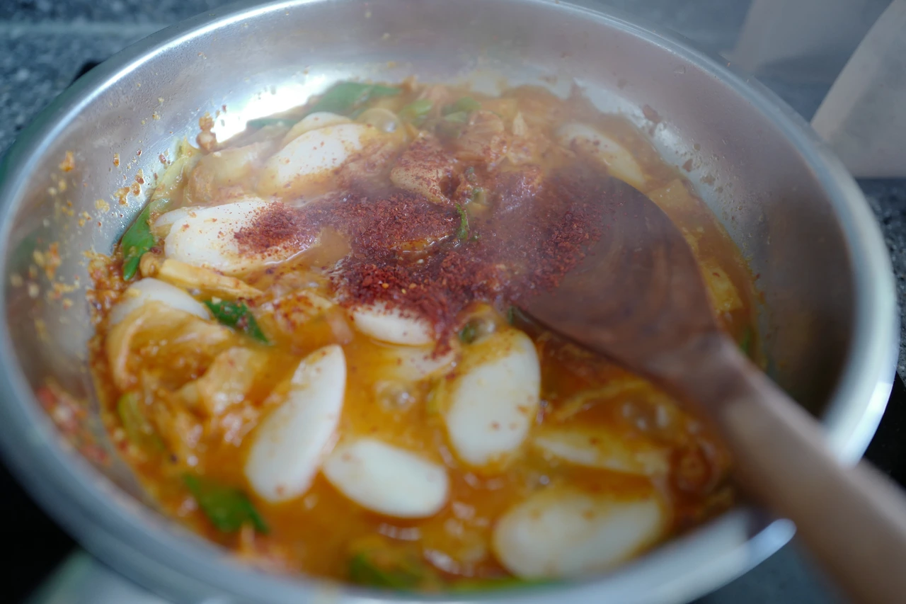 고춧가루만 한스푼 더한다. 김치가 모든 양념을 쥐고 있기 때문이다. 집김치의 맛에 따라 설탕과 육수의 양을 조정한다. 굳이 간장을 넣을 필요는 없다.