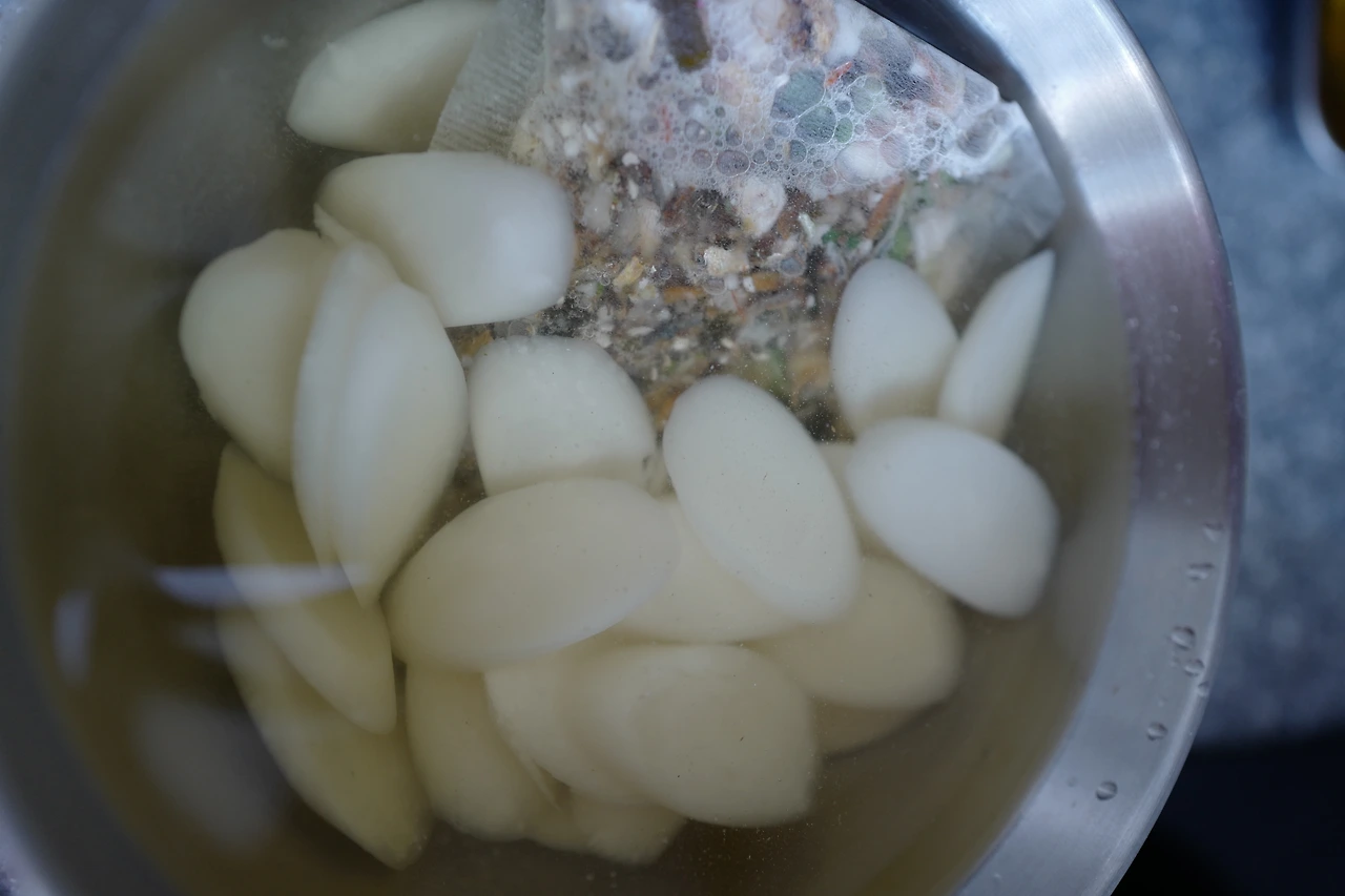 굳이 육수를 사용하지 않고 생수로 만들어도 된다.