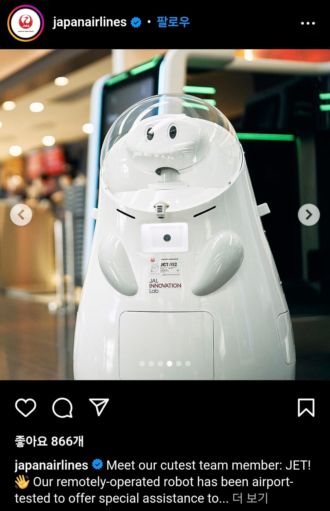 일본항공 인스타그램 계정에 소개된 로봇 제트.