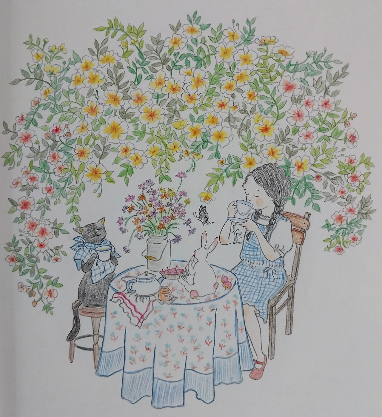 (*초록담쟁이의 아름다운 날들 사계절 컬러링북을 색연필로 색칠한 그림입니다)