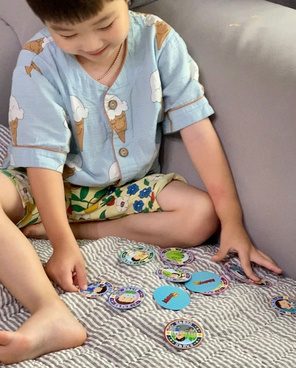 요즘 문해력 유치원을 통해 한글을 접하고 있는 1호는 카드를 유심히 살펴보며 딱지를 뜯었습니다.