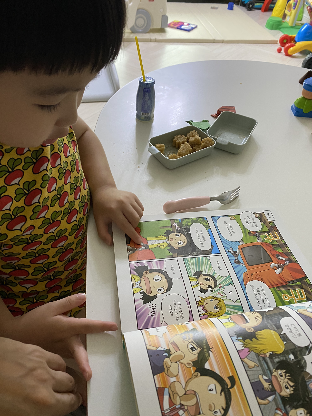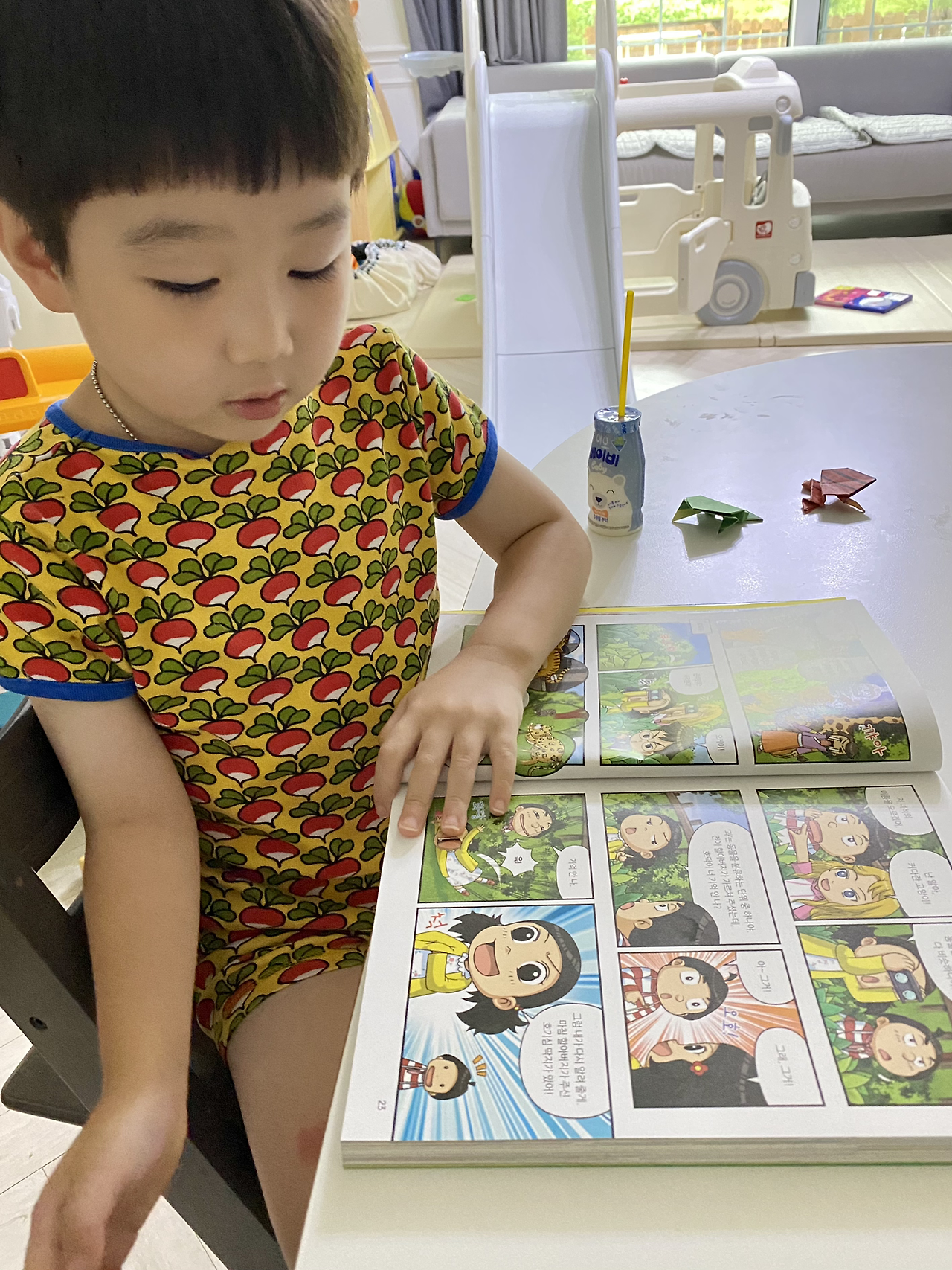 그리고 손이 가는 대로 책을 펼쳤습니다. 학습 만화는 처음이라 그런지 질문이 많았고 재미있어하였습니다.