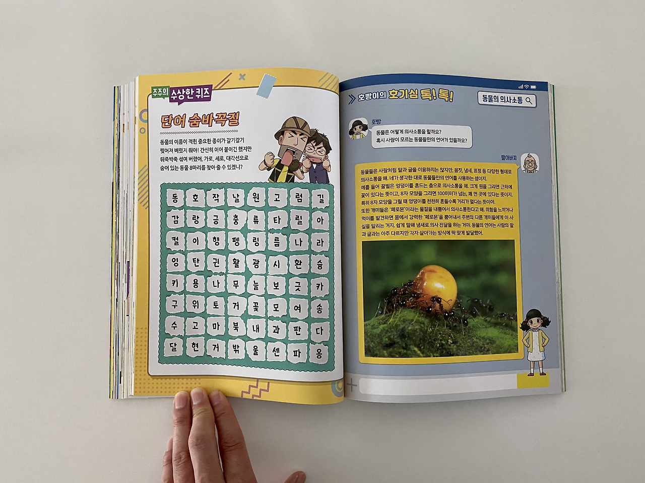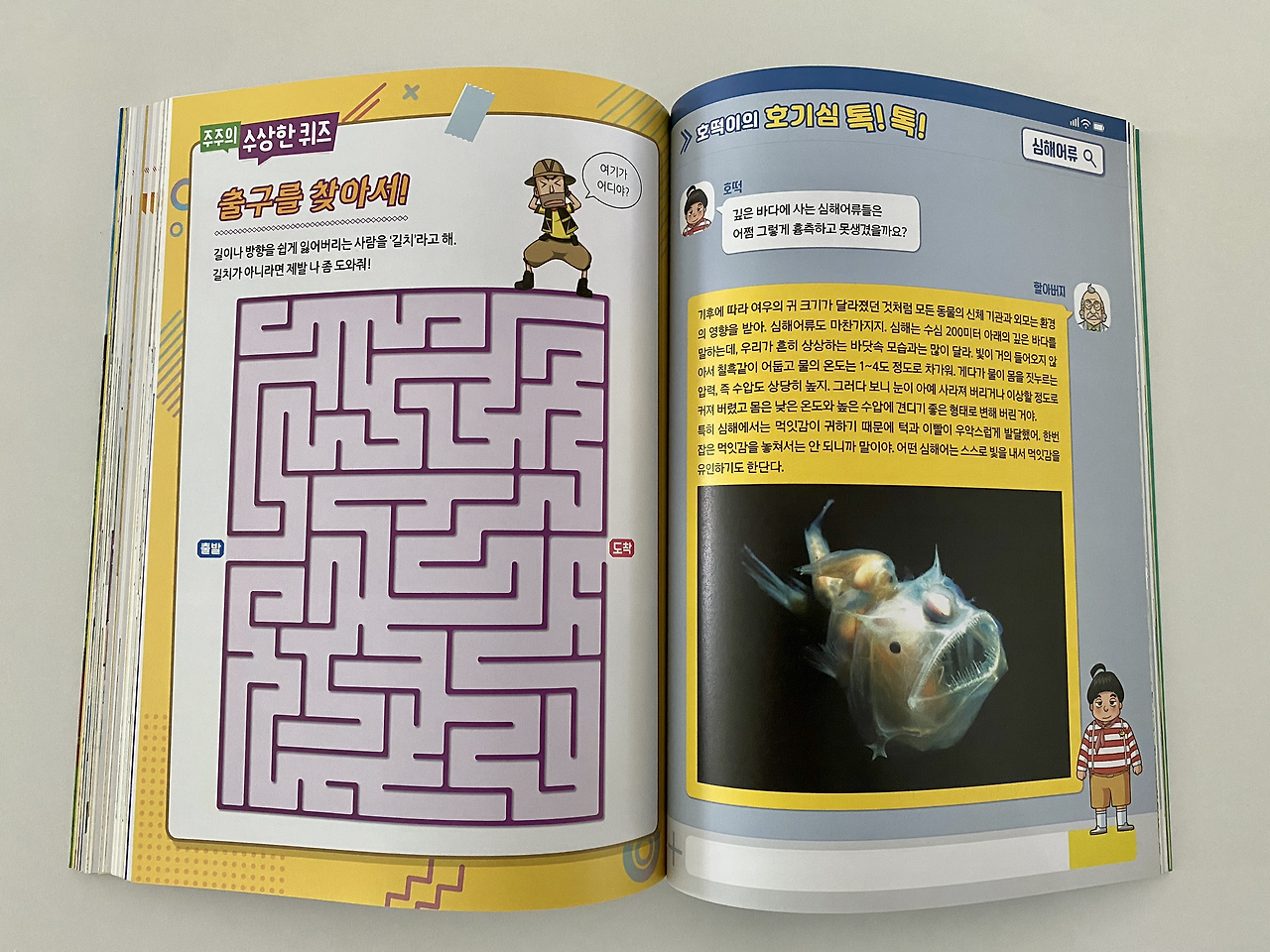 그 외에도 출구를 찾아서! 미로 찾기도 있었습니다. 학습 내용을 이해만 하는 것이 아니라 퀴즈를 풀며 배운 것을 재미있게 정리하는 활동에 활용하면 좋을 것 같다는 생각이 들었습니다. 퀴즈 정답은 책 맨 뒤에 있어 해답으로 활용하면 좋겠습니다.