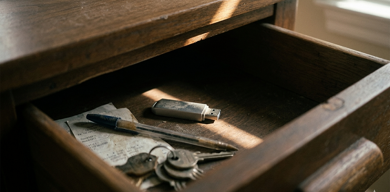 실패는 성공보다 늘 용량이 큽니다. 후회와 미련이 덕지덕지 덧붙여지기 때문이죠. 처음엔 가벼웠던 USB가 실패의 기억들로 꽉 차서 더 이상 아무것도 들어갈 자리가 없을 때, 역설적으로 이제 새로운 이야기를 써도 된다는 신호일 수도 있습니다. 혹은 그저 담아만 두는 것으로 마무리해도 좋습니다.