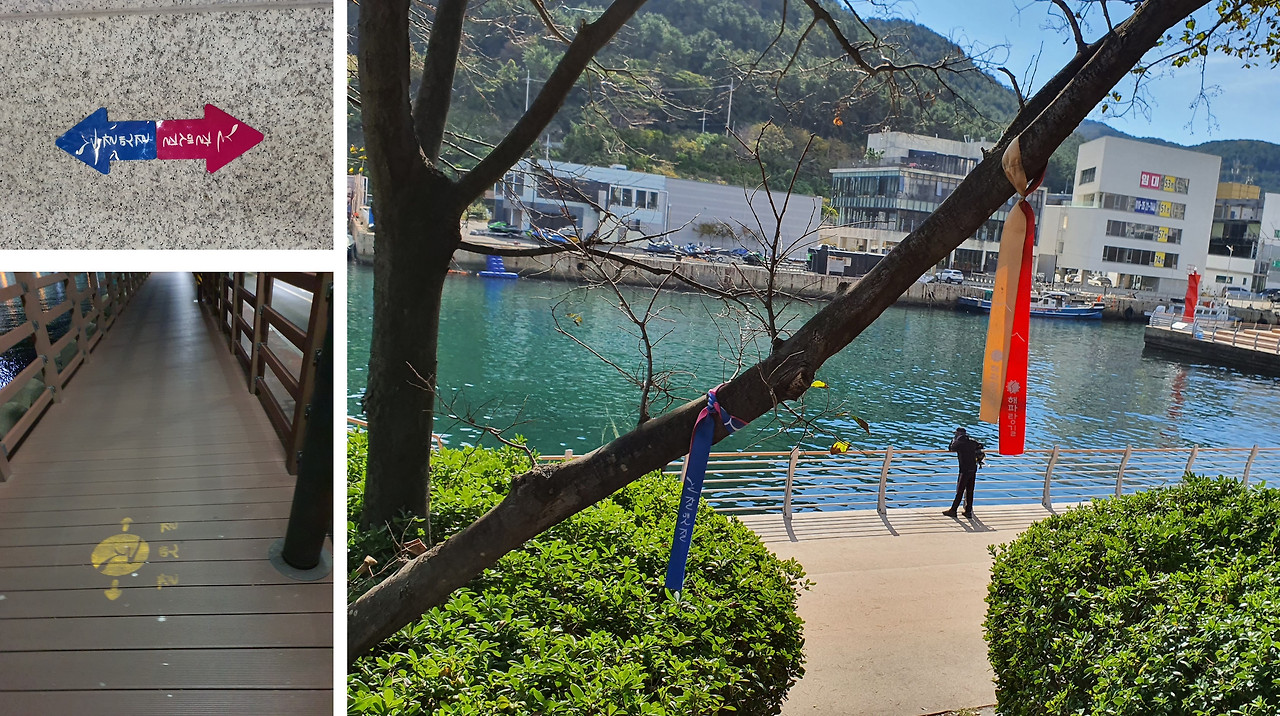 [그림 1] 부산 둘레길인 갈맷길 표시와 용호만 유람선 터미널을 지나면 용호만과 이기대 해안 산책로가 연결된 갈맷길. 해파랑길과 갈맷길이 겹치는 구간이다.