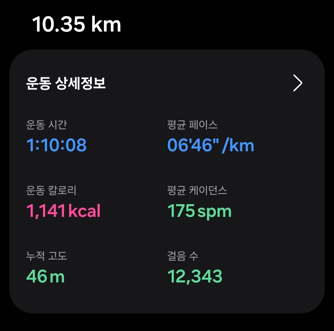 호흡은 거칠고, 다리는 무겁고, 정말 바보처럼 달렸다. 아픈 허벅지까지 신경 쓰느라 페이스를 돌볼 겨를이 없었다.