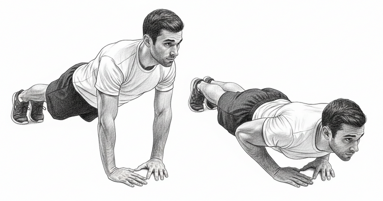 가슴 운동의 대표주자는 푸시업(Push-up)입니다. 지난 글에서 다룬 '벽 짚고 푸시업'이 근력을 깨우는 준비 운동이었다면, 이제는 본격적으로 바닥으로 내려가 중력을 활용할 차례입니다. 우리가 이미 배운 <3-1-1 원칙>을 적용하여 안전하게 강도를 높이는 2단계 루틴을 제안합니다.