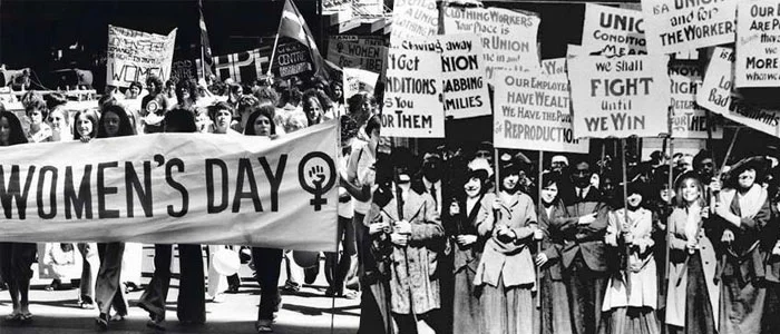 1909년 뉴욕시 블라우스 공장 노동자 2만 명이 대파업을 벌이며 8시간 노동제와 25% 임금인상을 따내는 성과를 만들어 낸다. 트라이앵글 화재 참사와 이에 맞서 미국 여성 노동자들의 투쟁을 기념하기 위해 독일 여성 사회주의 혁명가 클라라 체트킨이 세계 여성의 날 제정을 발의했고, 러시아 혁명가 레닌이 1922년 3월 8일은 혁명 러시아 공휴일로 지정한 것이 오늘날 우리가 기념하고 있는 세계 여성의 날을 공고히 하게 만들었다.