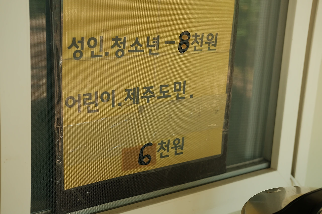 입장료는 성인/청소년 8천원, 어린이와 제주도민은 6천원으로 현장결제 및 계좌이체를 받았습니다. 입구 앞 주차를 하고 현장 매표를 한 후 입장이 가능했습니다.
