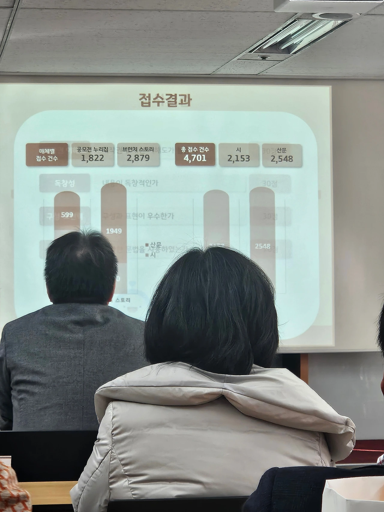 시상식이 진행되는 동안 여러 축사가 이어졌는데, 그중에 윤동주님에 '서시'를 읊어주시던 한 시인님의 말씀이 제 가슴을 깊이 울렸어요. 격식 있는 자리에서 시가 주는 울림이라니! 그야말로 이날 시상식에 '화룡점정'을 찍는 순간이었죠. 문학을 사랑하는 저에게는 정말 잊지 못할 장면으로 기억될 것 같아요.